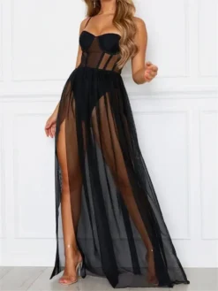 Women See Through Mesh Long Dress